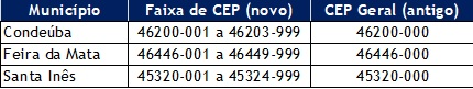 Salvador, 2/10/2025 – Os Correios concluíram os projetos de codificação postal dos municípios de Condeúba, Feira da Mata e Santa Inês. Agora, as localidades possuem todos os logradouros/trechos cadastrados com novo Código de Endereçamento Postal (CEP). Além de facilitar a localização de endereços, beneficiando moradores e empresas que prestam serviços, o sistema ainda permite que o CEP seja usado como referência de garantia de confirmação de endereço, prática comum entre empresas de diversos segmentos.