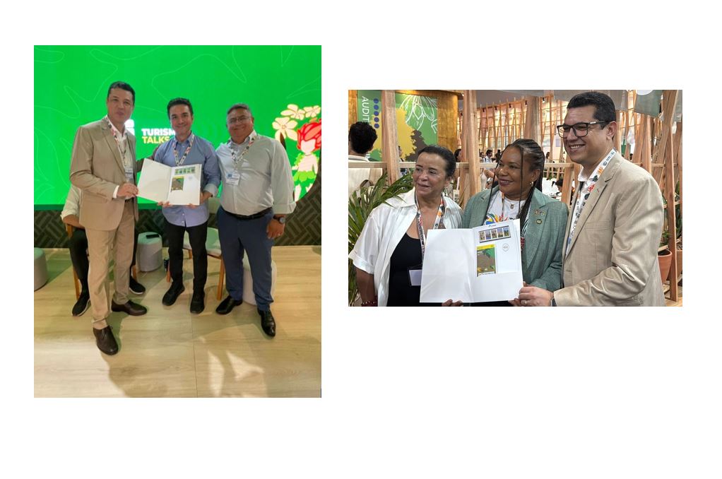 Participaram da solenidade o secretário executivo do Ministério do Meio Ambiente, João Paulo Capobianco; o coordenador de Parcerias da Secretaria Extraordinária para a COP30 (SECOP), Mauro O’de Almeida; a coordenadora de Cooperação da Organização dos Estados Ibero-Americanos, Telma Teixeira; e Mari Carvalho, também da SECOP, que desenvolveu as ilustrações.