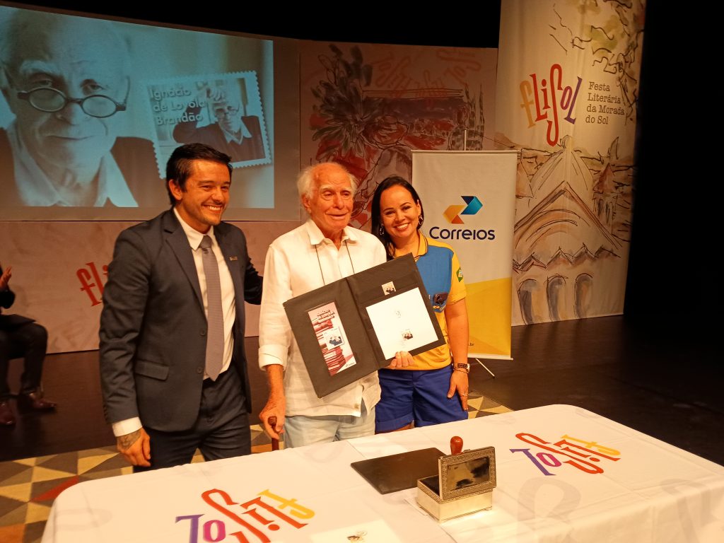 Araraquara/SP – 11/11/2025 – Na última sexta-feira (7), no Teatro Municipal de Araraquara, foi realizado o evento de lançamento do selo institucional em alusão aos 60 anos de carreira do escritor Ignácio de Loyola Brandão. A ação ocorreu durante a 4ª edição da FLiSol – Festa Literária da Morada do Sol. As peças filatélicas integram a série Personalidades dos Correios, que reconhece grandes nomes brasileiros das artes e dos esportes.