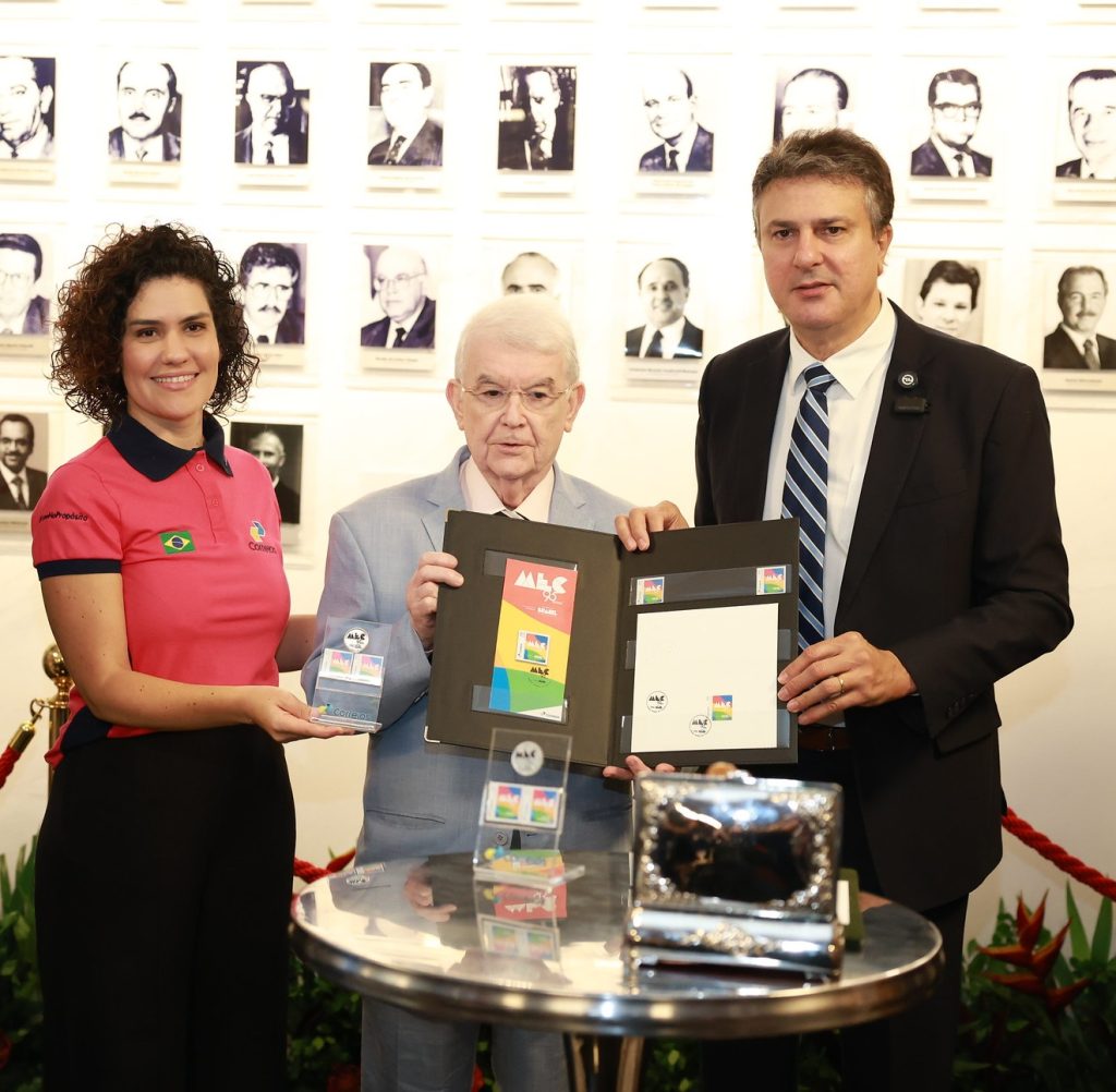 Brasília, 28/11/2025 – Em celebração aos 95 anos do Ministério da Educação (MEC), os Correios lançaram, nesta sexta-feira (28), selo personalizado e carimbo comemorativo alusivos à data. O evento, que aconteceu na seda da pasta em Brasília (DF), também marcou a inauguração da galeria de ministros do órgão, que foi totalmente restaurada.