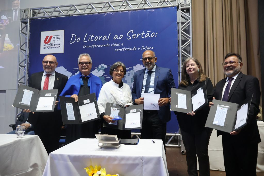 Recife – As seis décadas da Universidade de Pernambuco (UPE) foram celebradas, nessa terça-feira (2), na cerimônia de lançamento do selo postal personalizado e do carimbo comemorativo alusivos ao aniversário da instituição. O evento ocorreu no Auditório Célio Lemos, na Faculdade de Administração e Direito de Pernambuco (FCAP), no Recife, marcando oficialmente o início das ações comemorativas pelos 60 anos da UPE, reconhecida como uma das mais importantes universidades públicas do Nordeste. A celebração reuniu gestores, docentes, estudantes, representantes das universidades pernambucanas e autoridades, simbolizando um momento histórico para a educação pública no estado.