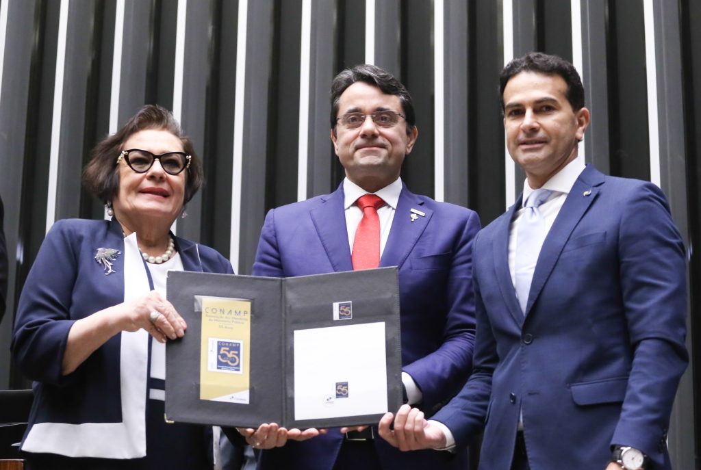 Durante sua fala, Tarcísio Bonfim agradeceu aos Correios pela sensibilidade na aprovação da proposta da emissão postal e afirmou que este é um momento de celebração, mas também de grandes reflexões. “A história da CONAMP confunde-se com a consolidação do Ministério Público como instituição essencial à justiça é à democracia. Ao longo dessas cinco décadas e meia, a CONAMP jamais se furtou aos grandes temas nacionais. Não é por acaso que celebramos os 55 anos da instituição no Plenário da Câmara dos Deputados, espaço máximo da representação popular brasileira e cenário de decisões fundamentais para a consolidação do estado democrático de direito”, reforçou.