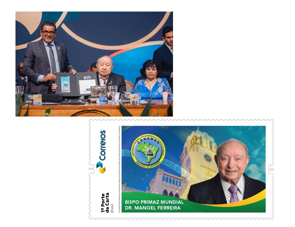Além da peça filatélica do centenário, foi apresentado também um selo especial em homenagem ao Bispo Primaz Dr. Manoel Ferreira, em reconhecimento à sua liderança e à contribuição para a organização, o fortalecimento institucional e a expansão da igreja.